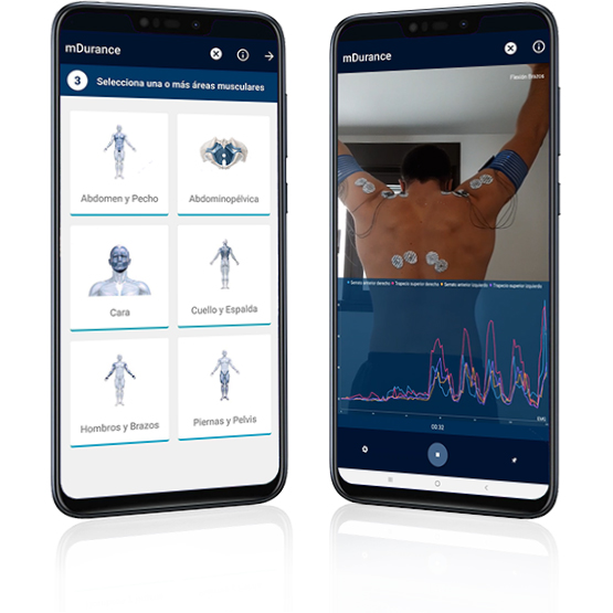 El electromiógrafo de superficie detecta alteraciones del tono basal de la musculatura. Con mDurance identificamos de forma objetiva cuando un músculo está activo o relajado.